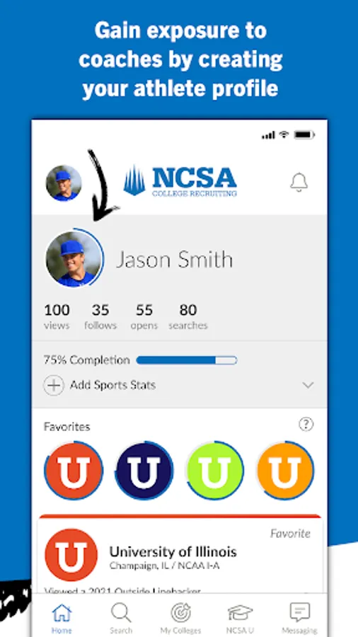 - Build a profile, add your film and describe what will make you an ideal part of a college roster