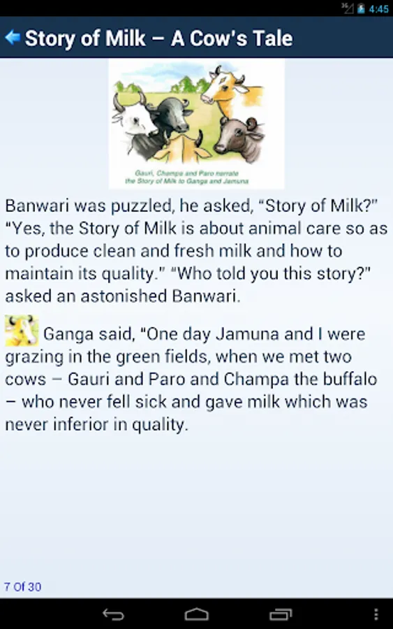 After listening to the Cow’s tale, Banwari got Ganga treated by a veterinary doctor. On receiving proper treatment, Ganga soon recovered. With this, Ganga produced better quality and larger quantity of milk. Banwari’s family started earning more and like earlier days there was happiness all around.