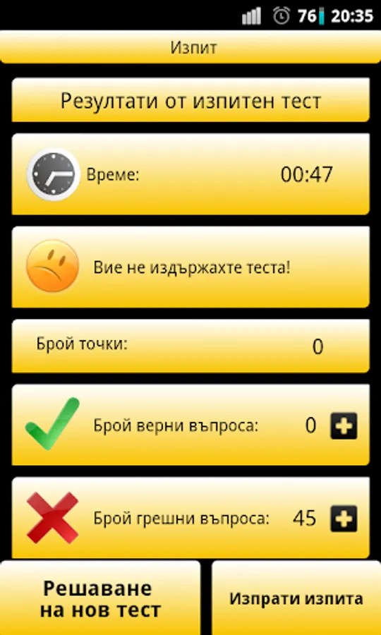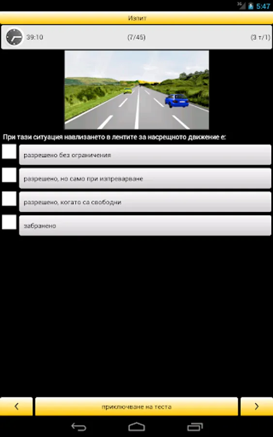 - Exam - in this mode for a specified time (depending on the category you selected) is