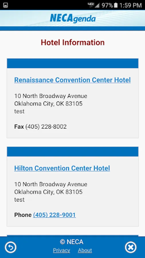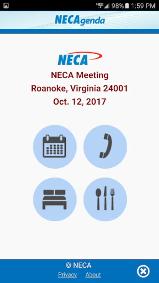 This meeting app provides the attendees of the National Exchange Carrier Association, Inc. the schedule with the daily events.