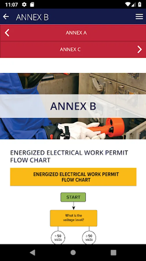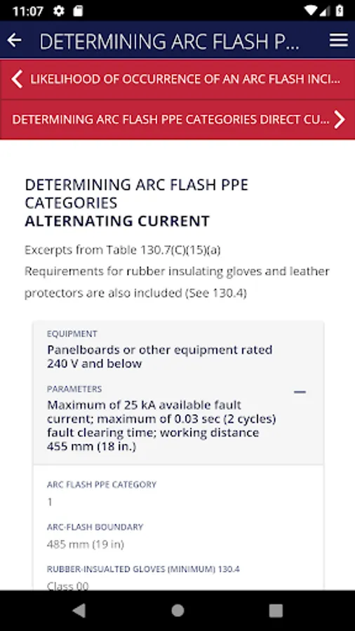 The app provides a simplified approach and understanding to jobsite PPE requirements by providing an in-app job task analysis, briefings examples and risk assessment tools with detailed requirement explanations. The app also provides users with Arc Flash PPE categories, glove charts, and specific PPE options for both direct and alternating current requirements.