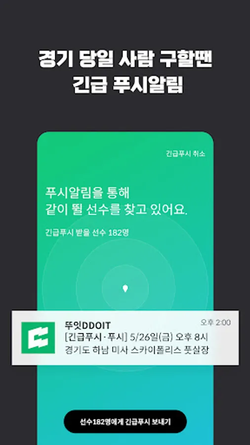 When the game suddenly runs out of players on the day of the game? I can send urgent pushes to players around me
