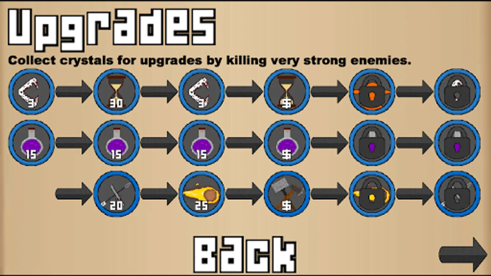 Collect Crystals to buy helpful upgrades. You can strengthen your character and even get sneaky advantages like 'Headshot bonus' or the ability to heal yourself by dealing damage.