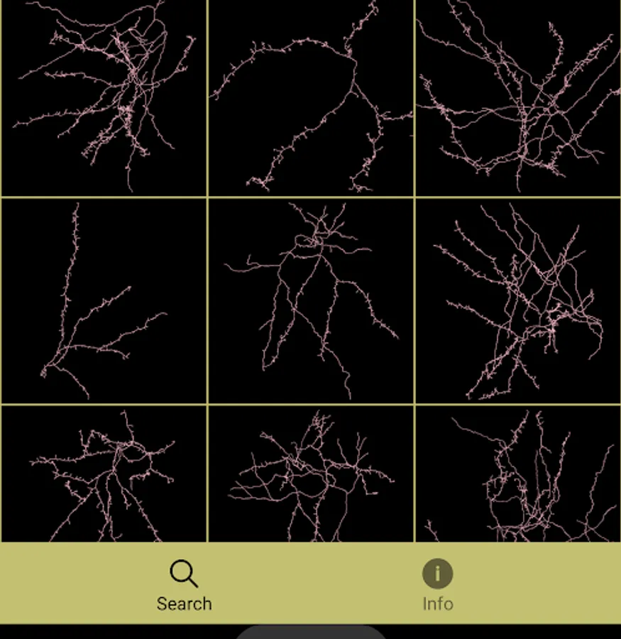 NeuroMorpho.Org is an online repository which provides more than 110,000 digital neuronal reconstructions and their associated meta data from more than 560 laboratories around the world. In this application, users can apply filters and search for neurons through a mobile interface, in addition to the previously existing web app interface.