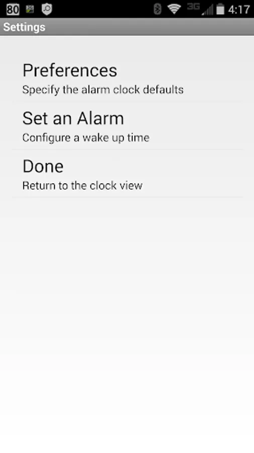 You can also use this app as an alarm clock, with or without the clock being displayed. The alarms can be set for a specific time of day, a specific date and time, or repeating on days of the week. The alarm will play your choice of a song or ringtone or it can be set to vibrate (or both).If you want to catch a few more winks, just hit the snooze button (as often as you like).