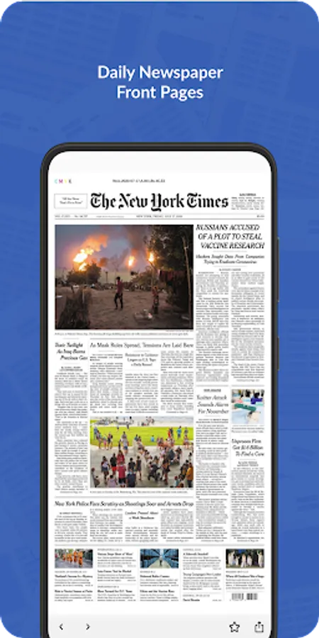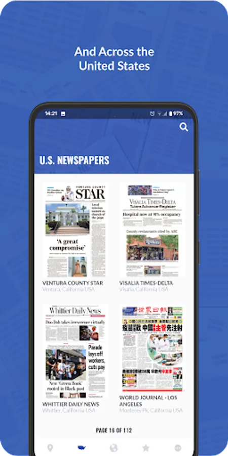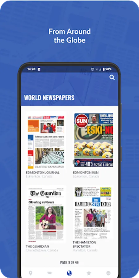 The Freedom Forum’s Today’s Front Pages app brings hundreds of daily newspapers from around the world to your fingertips. Create a list of your favorite front pages for quick and easy access. Search a newspaper by name or use the map to find it by location.