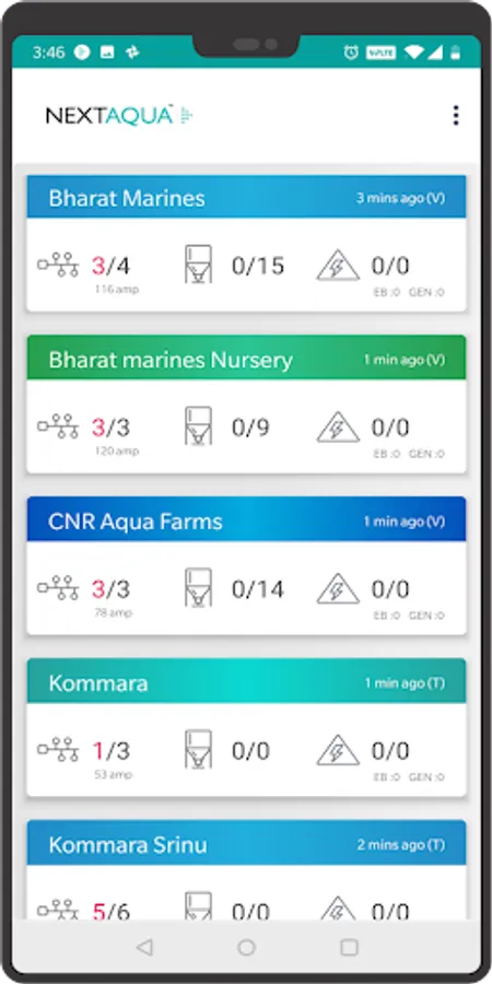 Configure & monitor required current limits & set your own time slots for alerts upon failure. The farm supervisor will be alerted thru a Siren for any electrical failures and farmer also will be alerted thru a phone call, if the farm supervisor didn’t attend the Siren at site. The farmer can configure the call hierarchy upto 4 Nos. (Their managers, relatives, neighbour pond supervisor...etc.,). Do not have an app? No worries, NextAqua intelligence system sends you an alert call without an app.