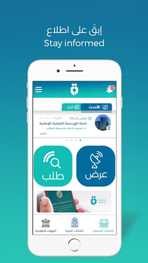 "Tanmiyah” is an electronic platform that enables Small and Medium Enterprises to boost the development of countries, and the only platform provide you with DIRECT and REALTIME by effectively linking bids - tenders and other needs of development projects of Government Agencies and Large Companies and small - medium enterprises with services or products that can be implemented through Small and Medium Enterprises. This is being implemented through an electronic application platform that contributes to the speed, accuracy and ease of connectivity between the owners of growth opportunities and small and medium enterprises.