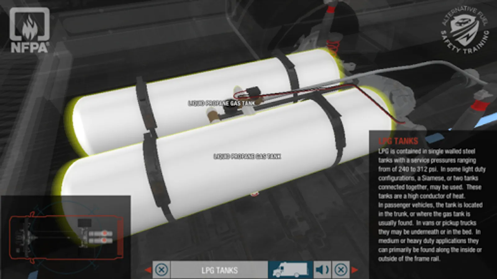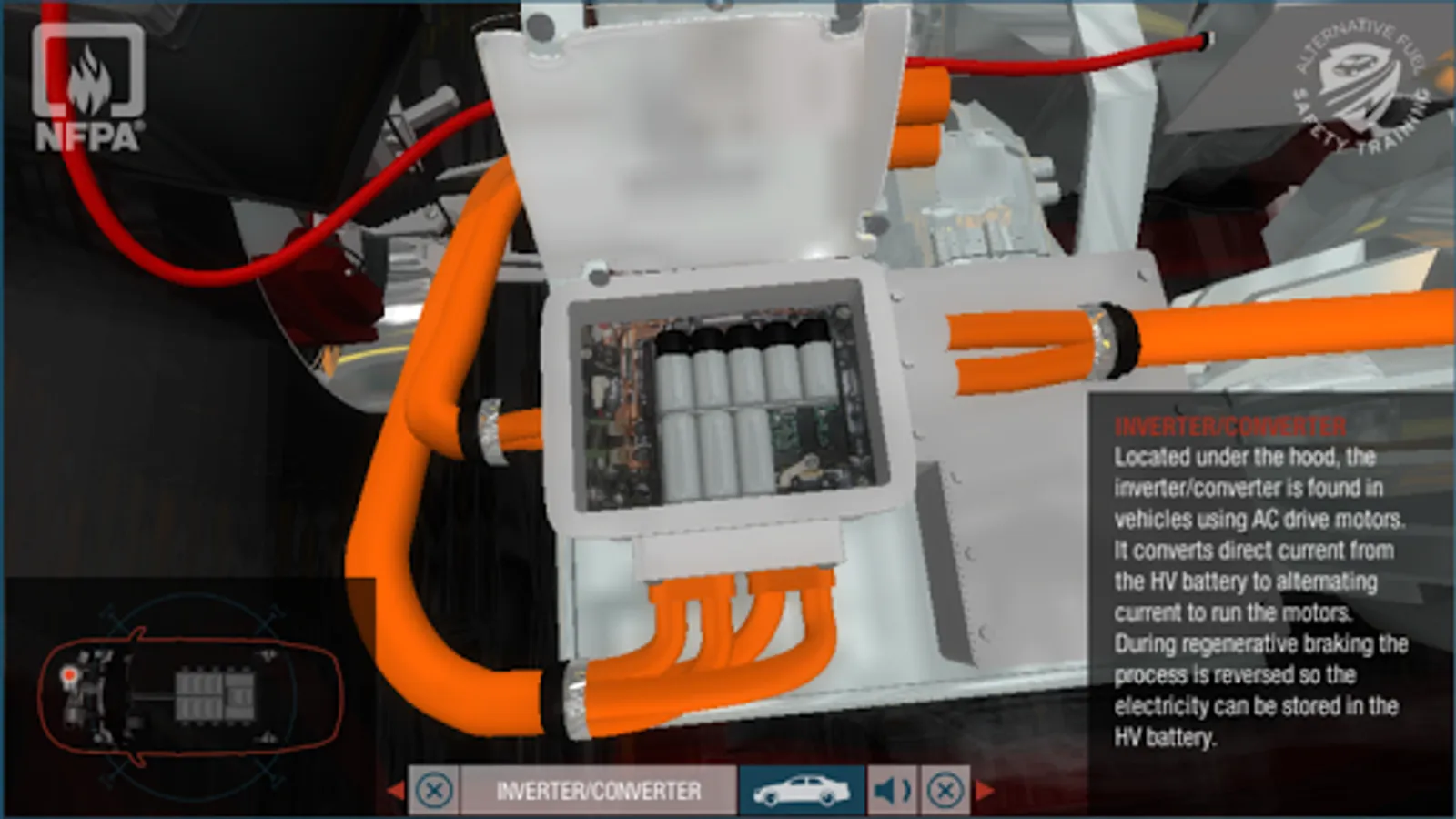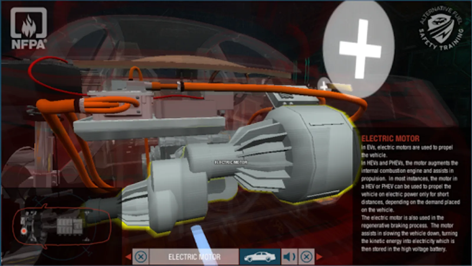 This App is designed to be used in conjunction with the National Fire Protection Association’s web based Alternative Fuel Vehicles Training Program. It provides the students who are completing the safety training on their Android Tablet with the ability to explore electric and gaseous fueled vehicles in a 3D interactive environment.