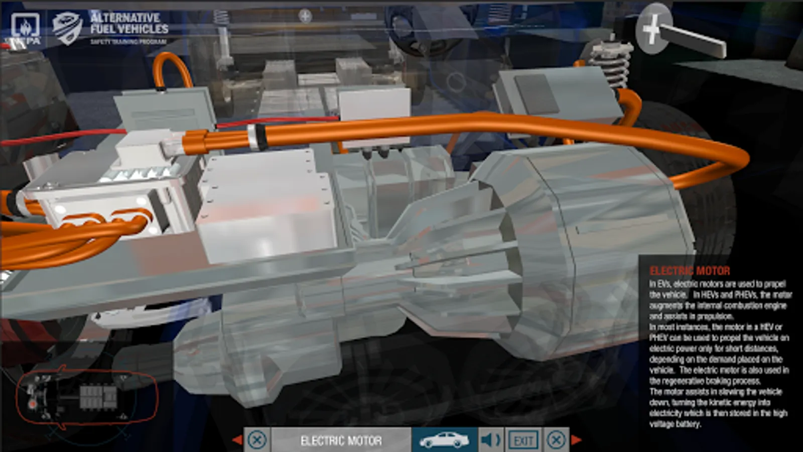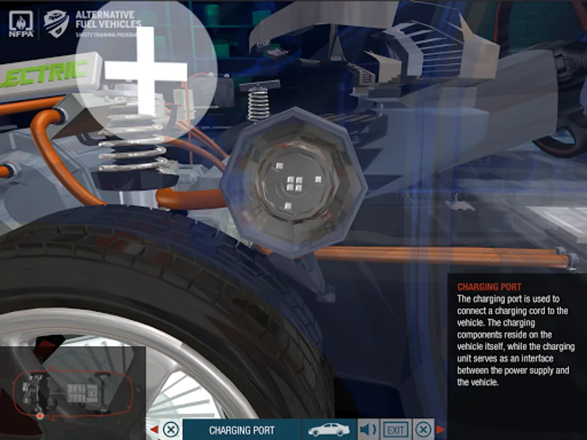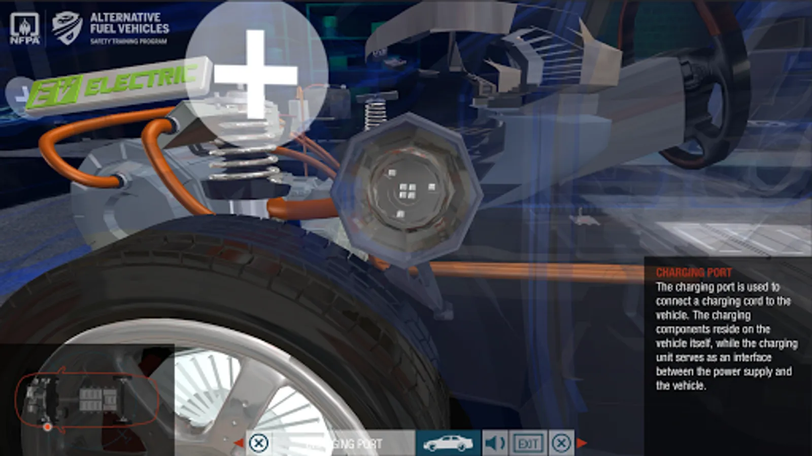 This App is designed to be used in conjunction with the National Fire Protection Association's web-based Alternative Fuel Vehicles Training Program, EMS Edition. It provides the students who are completing the safety training on their tablet with the ability to explore electric and gaseous fueled vehicles in a 3D interactive environment.