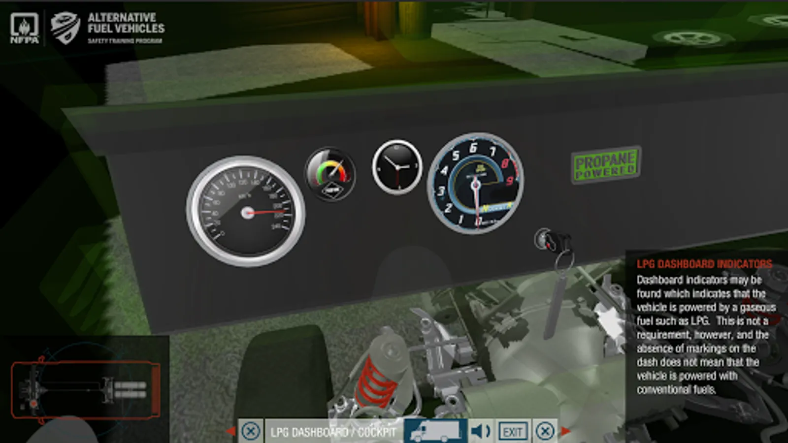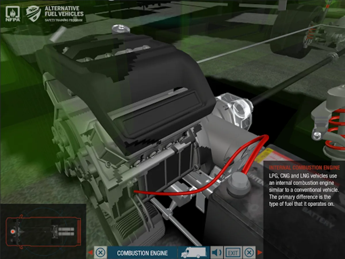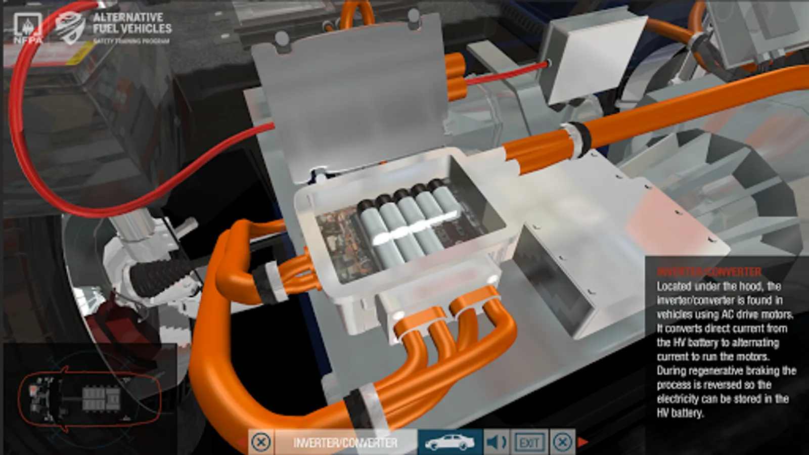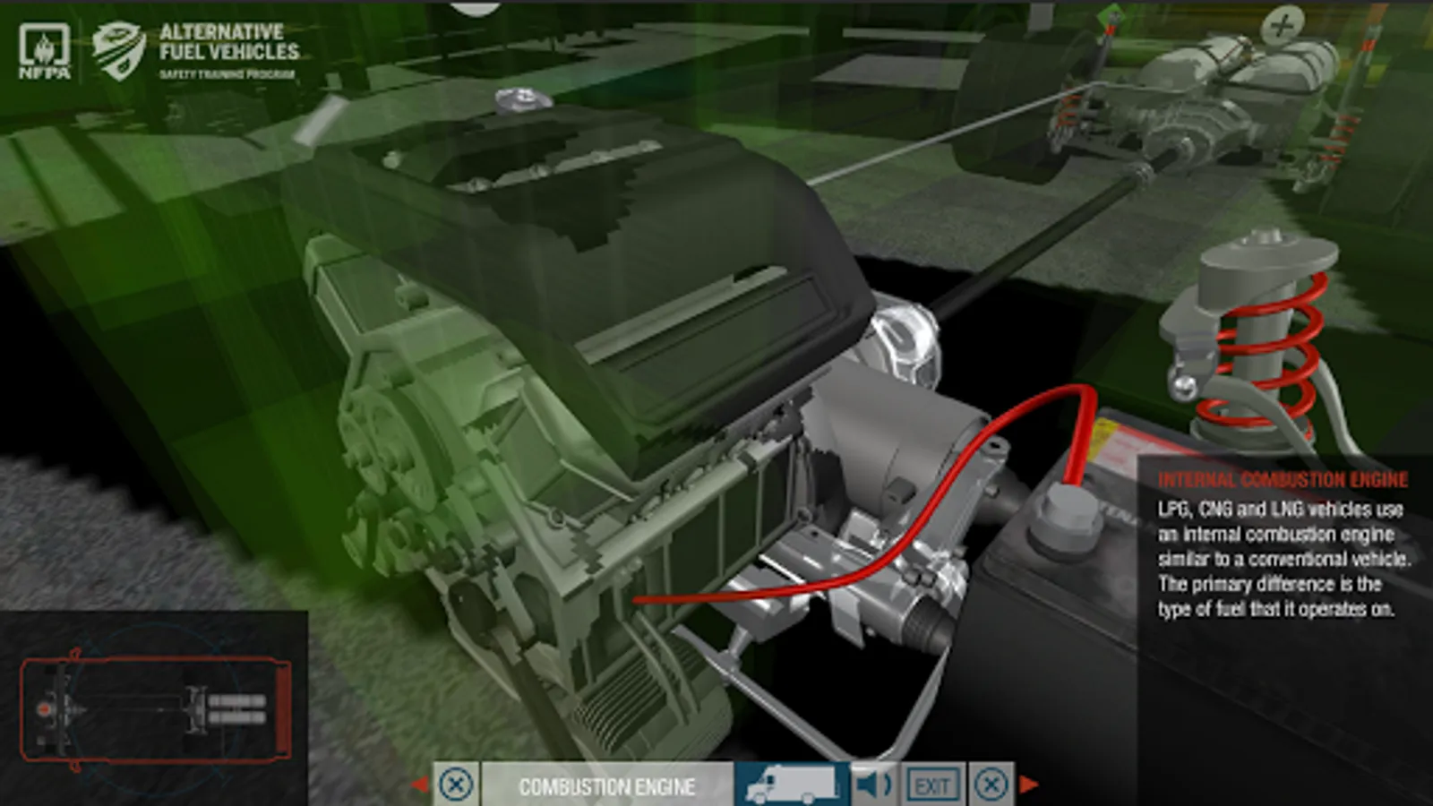 This App is designed to be used in conjunction with the National Fire Protection Association's web-based Alternative Fuel Vehicles Training Program, EMS Edition. It provides the students who are completing the safety training on their tablet with the ability to explore electric and gaseous fueled vehicles in a 3D interactive environment.