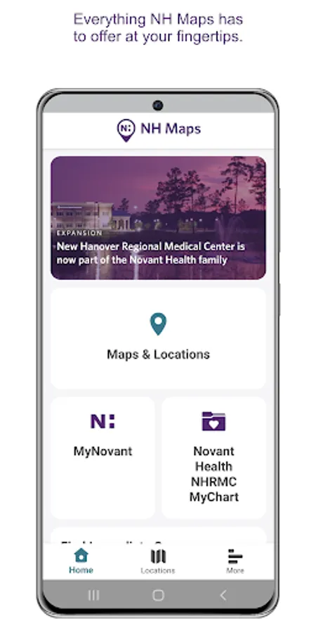Novant Health is committed to the health and well-being of our community. Our NH Maps App is one more step we’re taking to meet you where you are and to help guide you through your healthcare journey with Novant Health. Whether you need to find your nearest Emergency Department or Express Care location, choose a Primary Care or Specialty practice that’s convenient to you, navigate the halls of our Novant Health New Hanover Regional Medical Center, or connect with us through MyChart, we give you an easy and convenient way to handle these tasks and so much more.