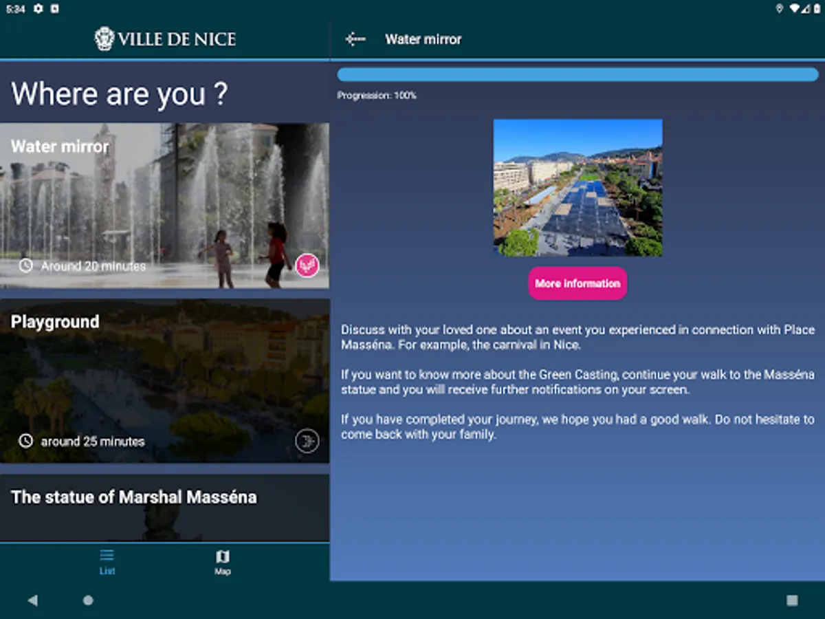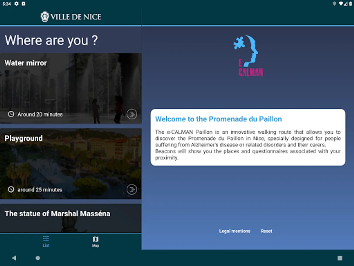 The e-CALMAN Paillon is an innovative walking course that allows the user to discover the Promenade du Paillon in Nice, specially conceived for people suffering of Alzheimer or with related disorders and for their caregivers.
