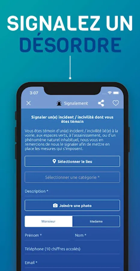 The application allows residents to report quickly and simply a disorder or incivility, and trigger a response as soon as possible services on the city of Nice.