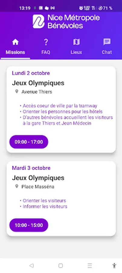 Nice Métropole Bénévoles (NMB) was designed alongside and in addition to the Nice Events application.