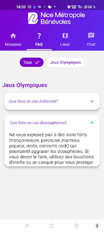 In addition, the app provides a detailed list of key sites related to the event, an FAQ section to answer their questions, as well as a WhatsApp-like chat to instantly communicate with other volunteers and obtain the information necessary for the event. execution of their missions.