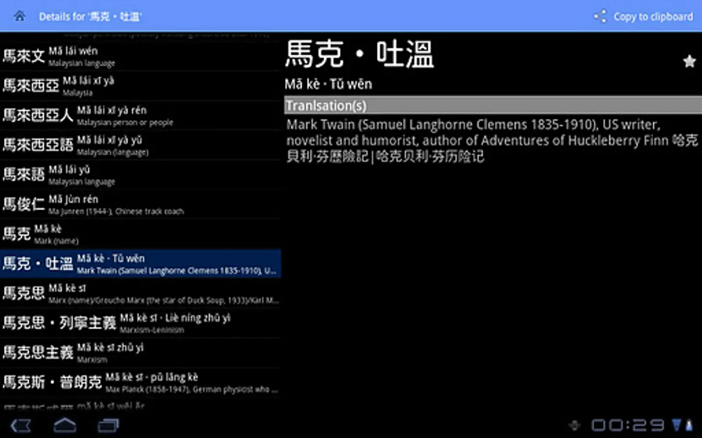 Handwritten character recognition and dictionary for simplified and traditional Chinese.