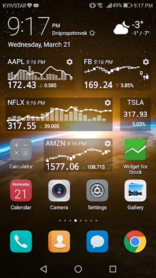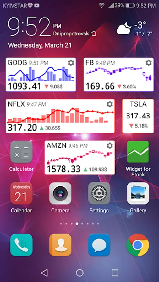 Put the Stock Prices Widget that shows daily price and volumes timeline for