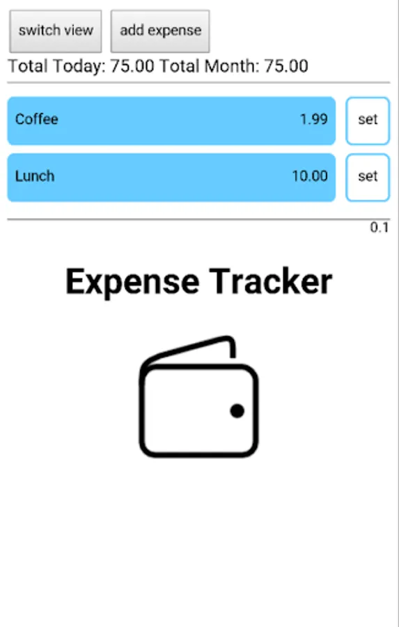 Add expense and a base cost. The quick button add one purchase. Same expense but different price? No problem. Use the set-Button and add a one time price to trackt the purchase.