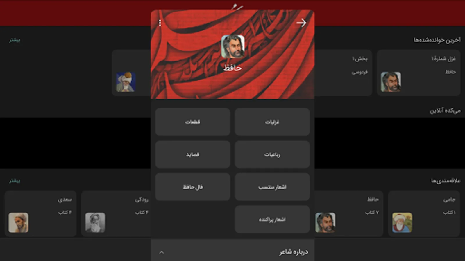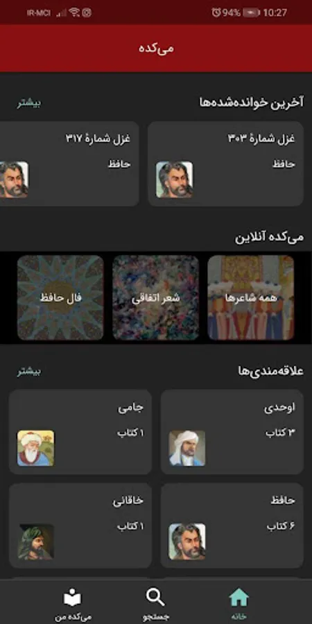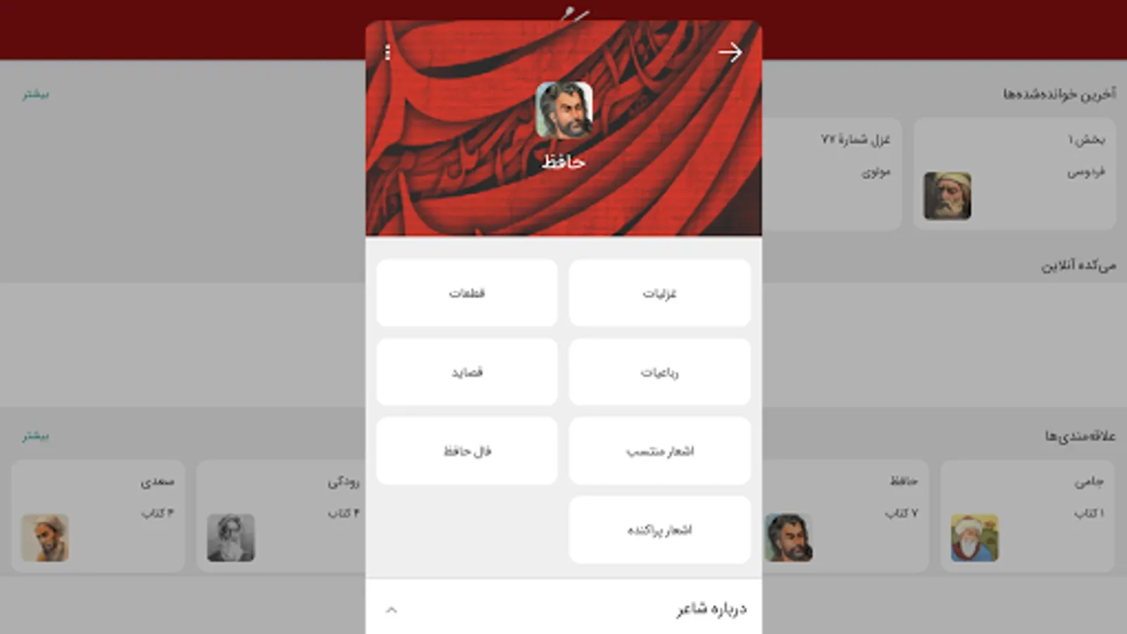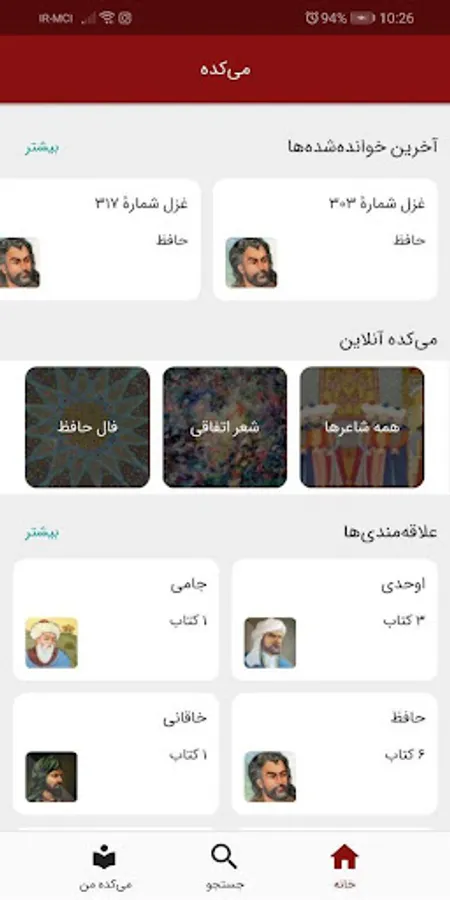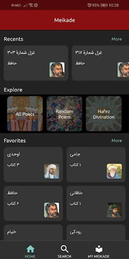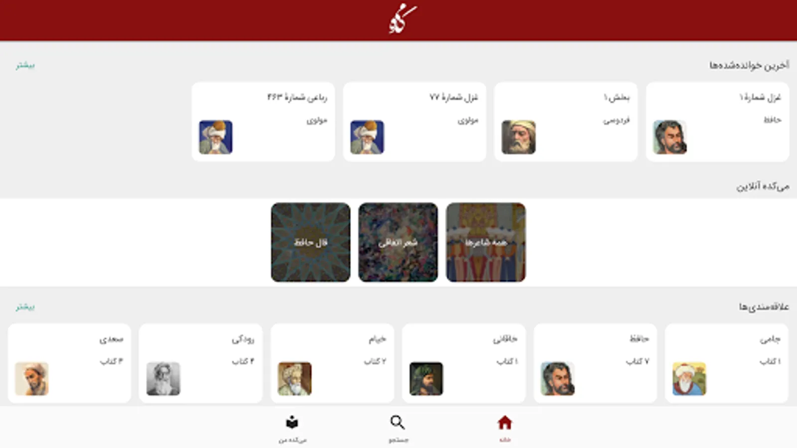 You can find over 60 poets and 50,000 poems in the Meikade’s stores for free. Just open Meikade and download them from the store.