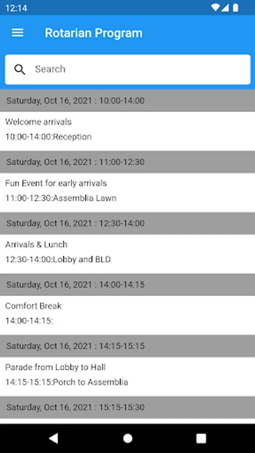 The App is created to make it easy for any attendees to keep track of the sessions, view the speaker list and find fellow Rotarians.