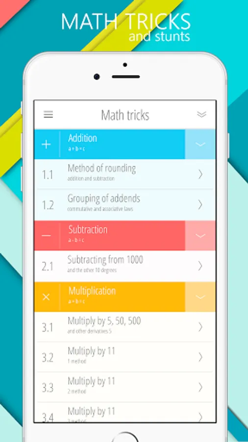 This application - a game and a guide which includes the most effective mathematical methods of mental arithmetic.