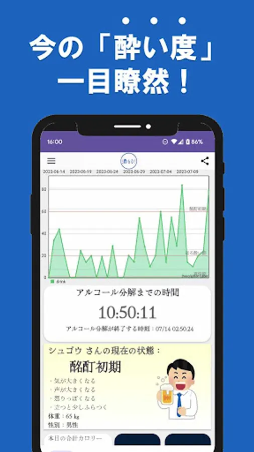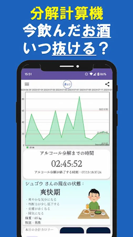 In addition, since alcohol decomposition is also performed in muscles, albeit in very small amounts, we have adopted an algorithm that slightly increases or decreases according to muscle mass.
