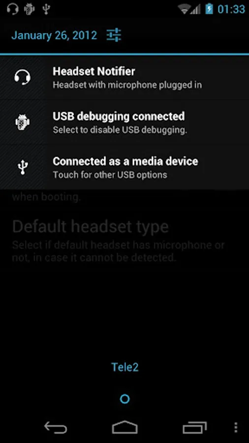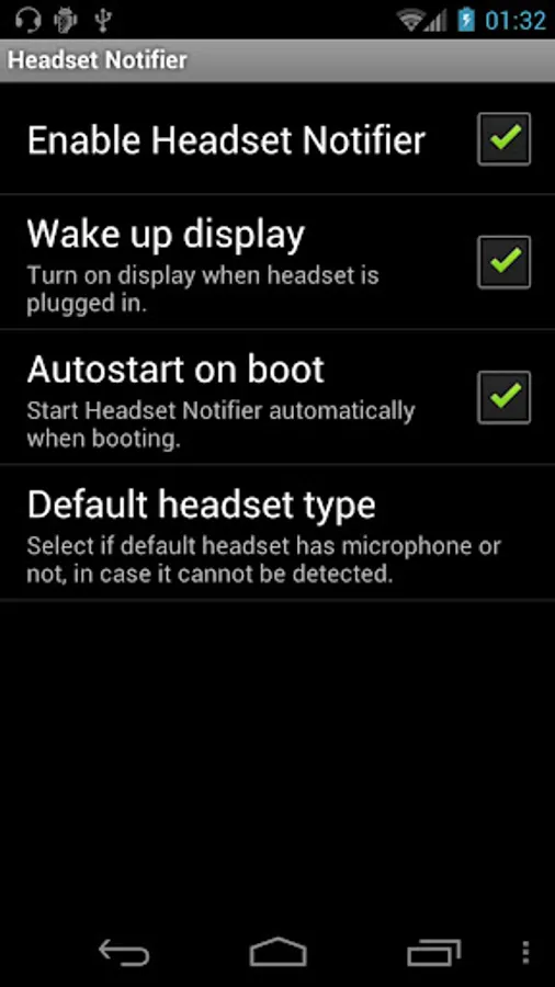 Displays a status bar notification when a headset or headphones are plugged into the phone. When supported by the device, it automatically detects if a microphone is available or not.