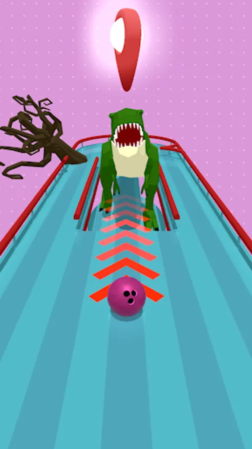 Shoot your bowling ball down the alley and smash as many pins as you can - just try to avoid the T-Rex on the way down!