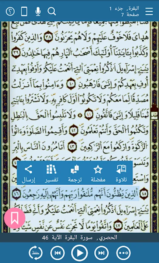 • The voice assistant allows for access to text and audio on-the-fly to most important functionalities, such as: Surat, Ayat, Reciters, Tafsir, Settings, Wird, Tahfidh, … .