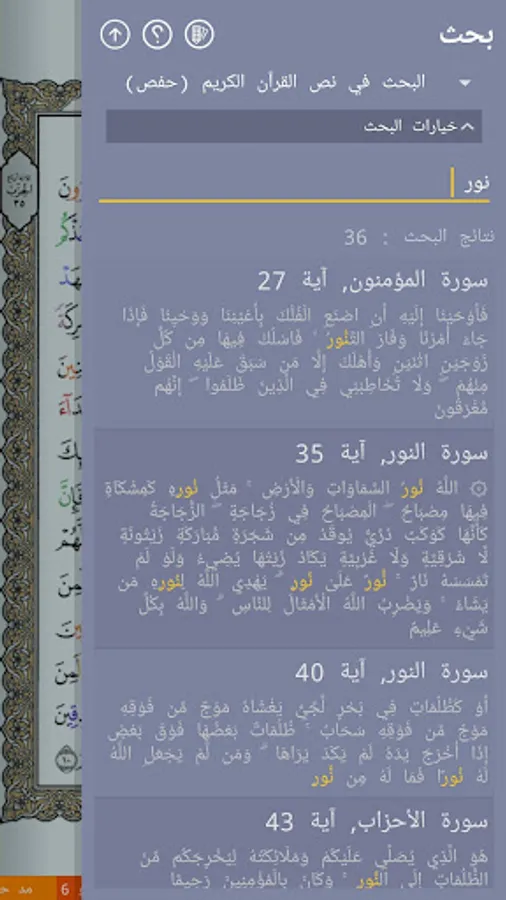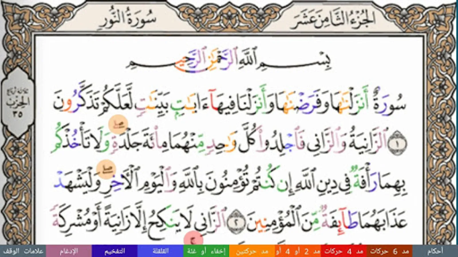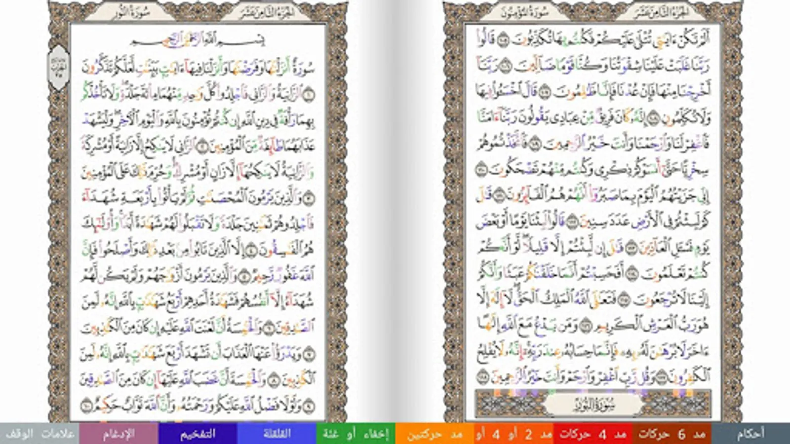 • Colored display of individual Ahkam features that would allow for proper learning and reading of the Holy Quran.