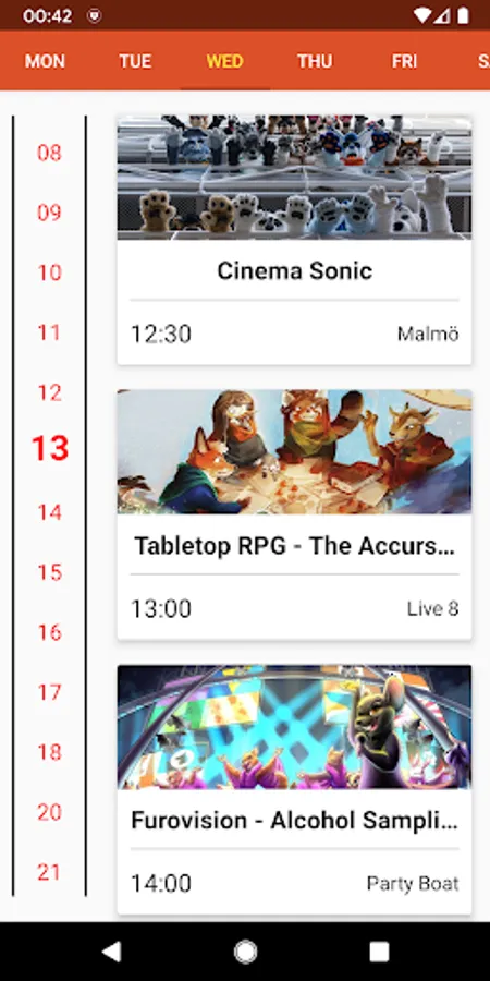 - A full list of all the events with options to sort so you can easily find what you're looking for