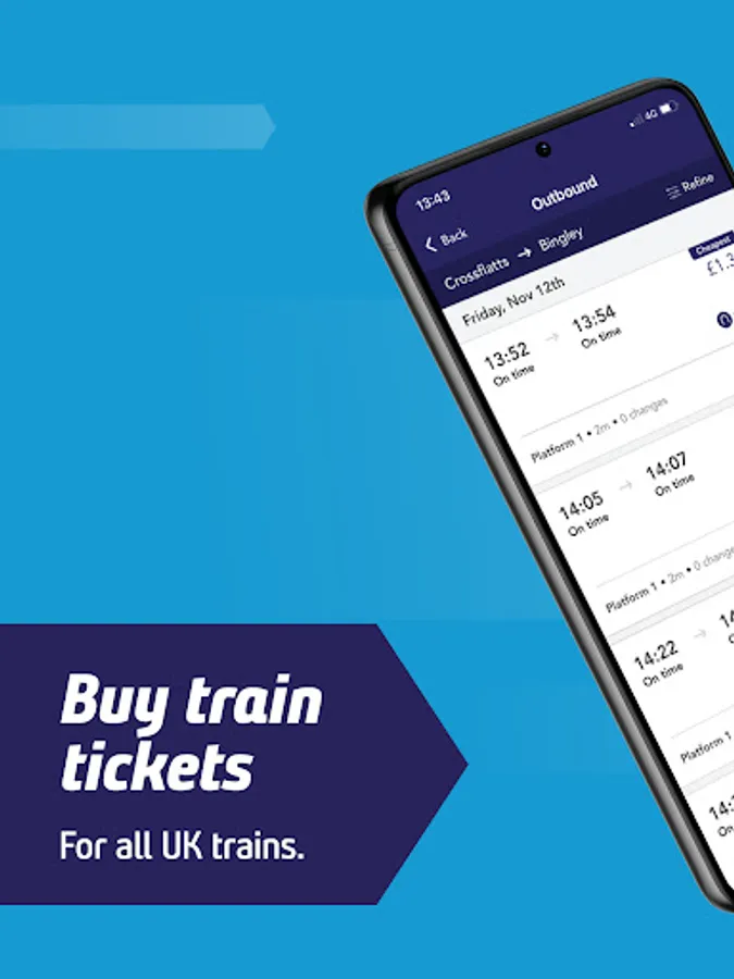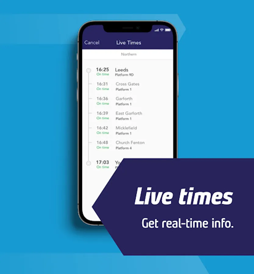 Don’t miss out on the best prices when booking train tickets. Download the Northern app today and we’ll automatically serve you the lowest fare for any train journey in Great Britain. Easy to use, our app shows live train times across National Rail and lets you reserve seats and buy tickets to download to your phone. Journey planning is just as simple with departure times and platforms given for most stations. We’ll even remember past searches to speed you up on your way! So, download the Northern app – there’s no smarter way to plan your journey and buy train tickets.