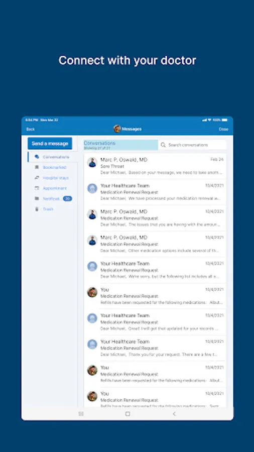 • Receive text and e-mail alerts with appointment reminders and completed test results