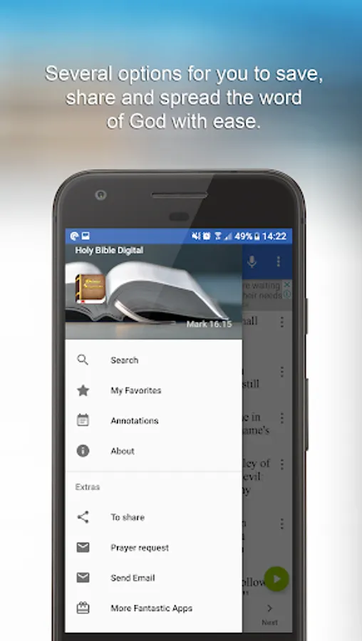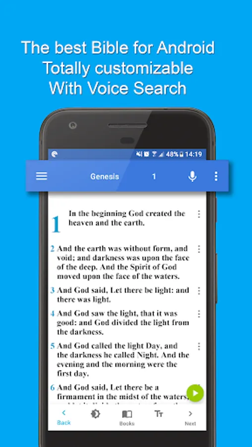 Arrived the best and most versatile Bible for your cell phone or tablet, holy bible digital, Meditate and read the word of God got much easier with our Free Application of the word of God, lightweight and simple to use application, the only one with search by voice, that's right, speak the Book, Chapter and Verse and the APP recognizes and shows you the corresponding text, our Application will revolutionize the way you read the Bible digitally, share the verses in the form of text, audio or Images, share through their social networks and Messaging Apps like WhatsApp, Facebook, Messenger, Instagram and all their social networks,