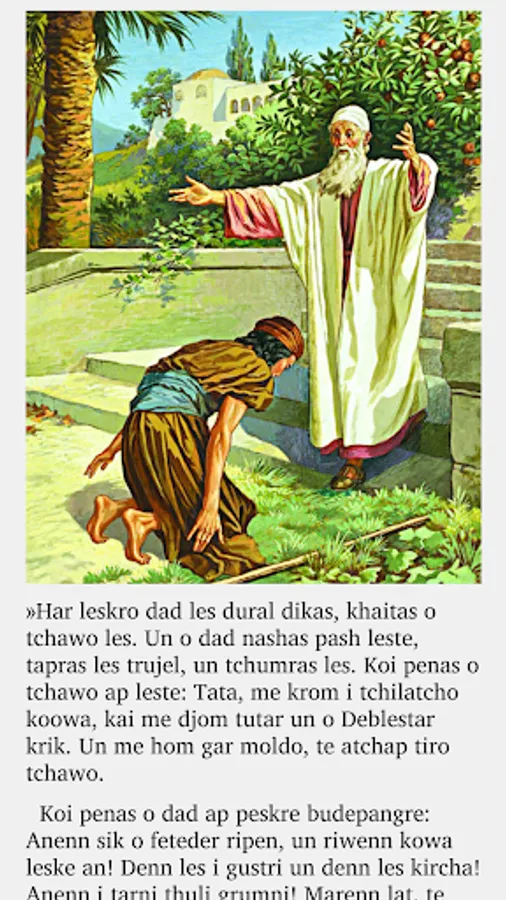 Picture Bible with sound in the language of the Sinti, for younger and older readers.