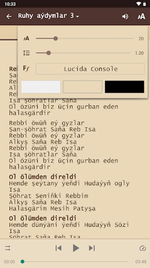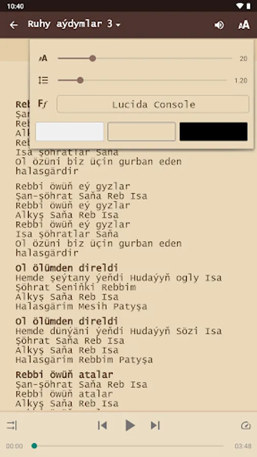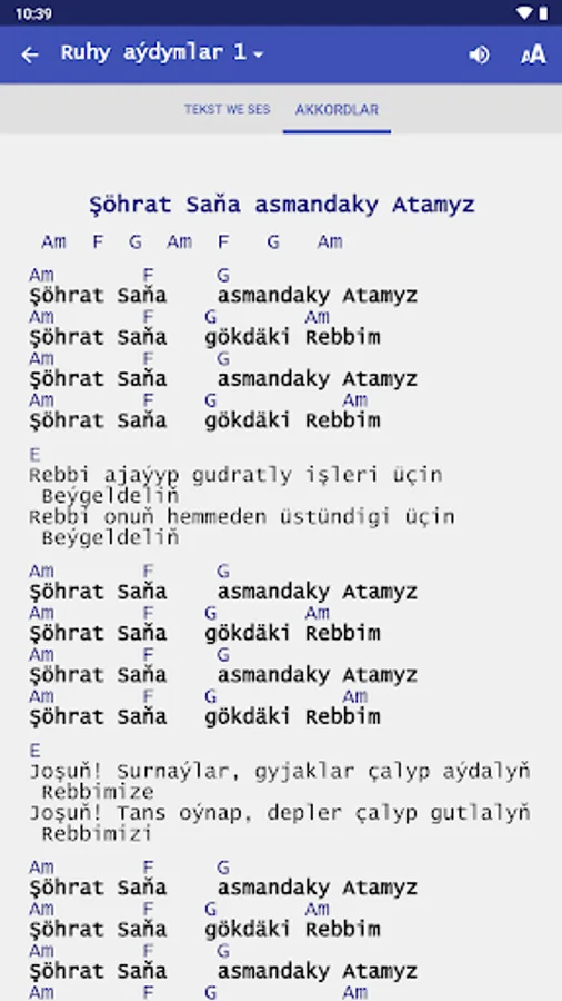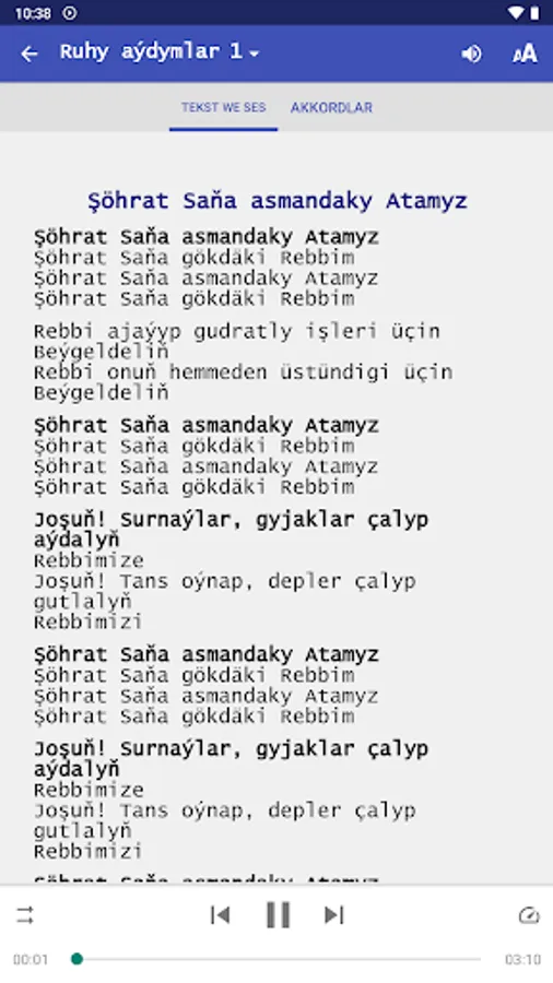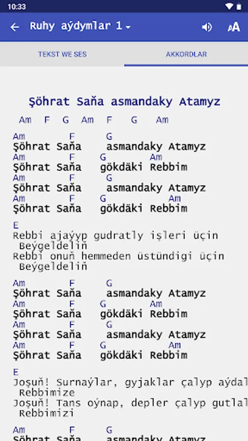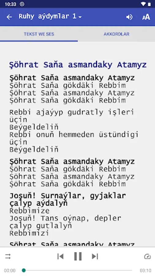 Türkmen dilinde ruhy aýdymlar, audio hem akkordlar bilen.