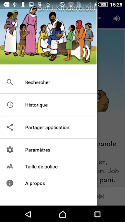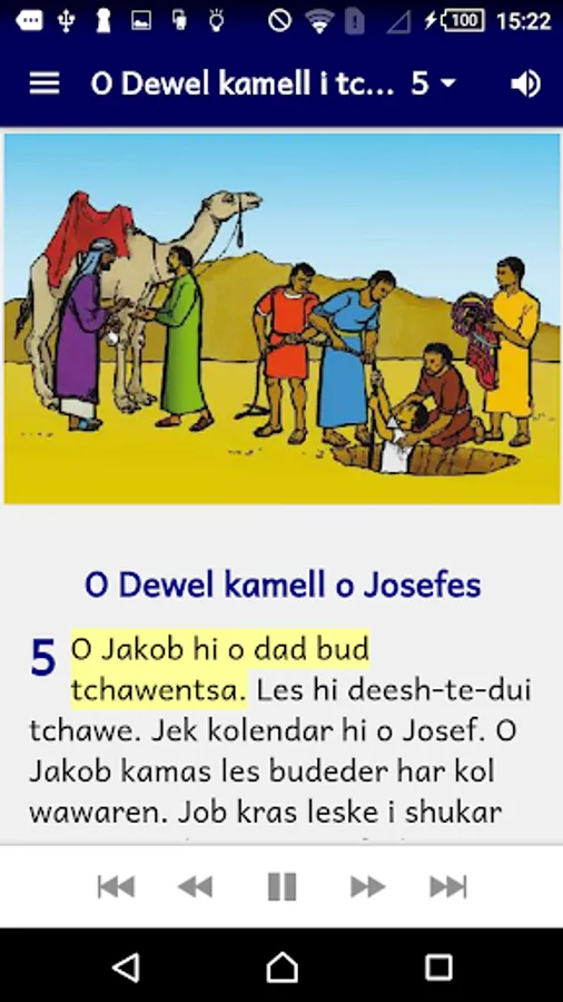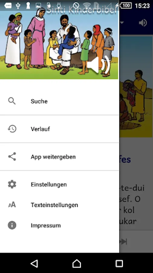 The Sinti Children's Bible App contains 25 biblical stories with audio and pictures. Text and sound are synchronized. This makes it easier for children to read along.