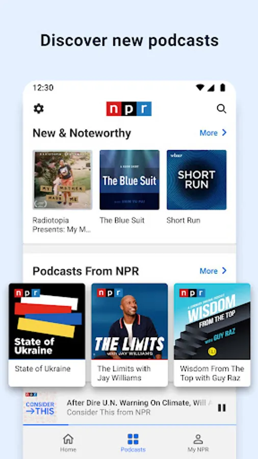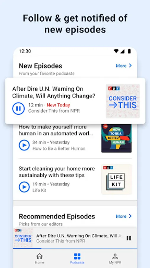 Follow and keep up with podcasts from NPR and the public radio network. Discover new favorites with our editors’ recommendations, or easily find the latest episodes from those you already follow. Turn on notifications so you never miss a new episode!