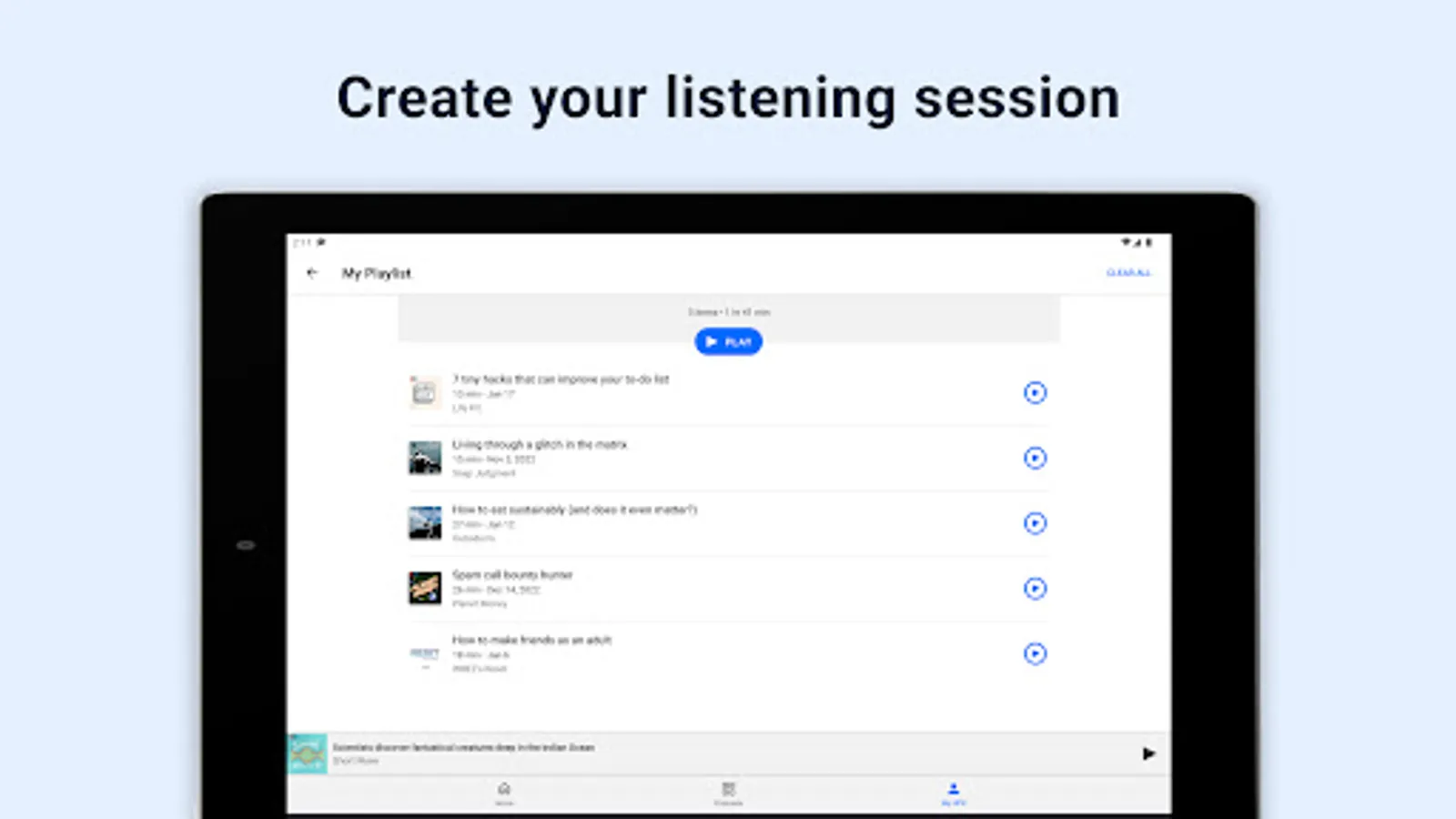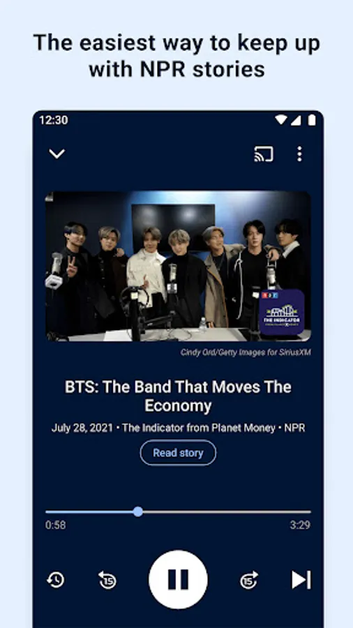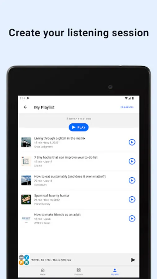 Just hit play at the top of the app to access NPR One – a mix of on-demand news from NPR and your local station, plus your favorite public radio podcasts. Or browse and playlist the latest from Morning Edition, All Things Considered and all your favorite shows.