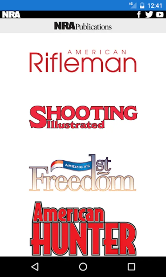 Experience NRA’s award-winning flagship magazines on your Android device. American Rifleman, American Hunter, America's 1st Freedom and Shooting Illustrated are available to NRA members. Email us for app assistance at: digitalsupport@nrahq.org.