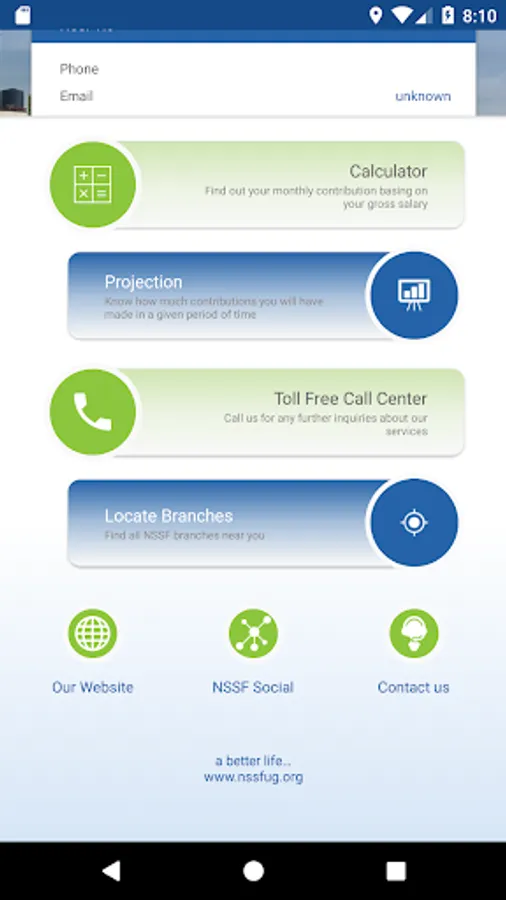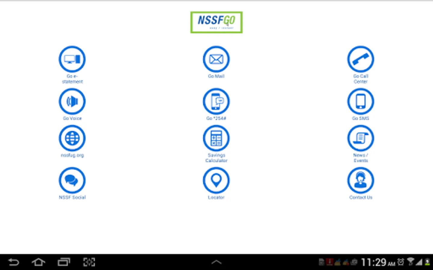 It allows you to access your E-Statement and monitor your transactions at NSSF. The app is simple to use and provides you a convenient, easy and safe way to contact NSSF anytime and anywhere.