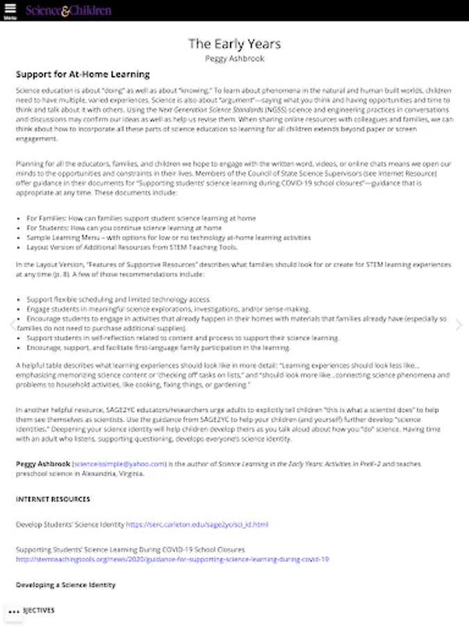 Science and Children is a Professional journal for the elementary teacher and principal.
