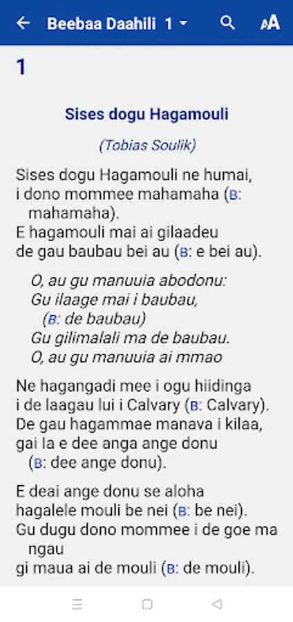 The app has a search feature, which allows the user to find words and phrases in any song.