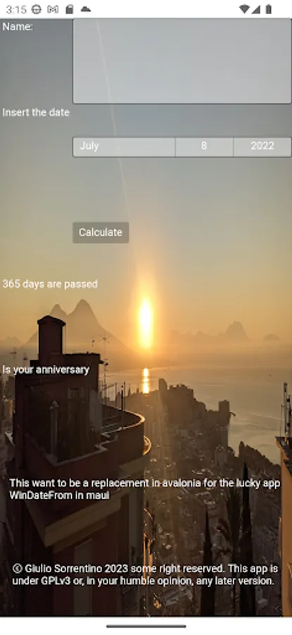 This app shows how much time has passed since a well-defined date that should represent an event, such as meeting a loved one, and shows how much time has passed since that date.