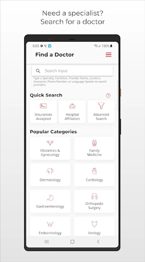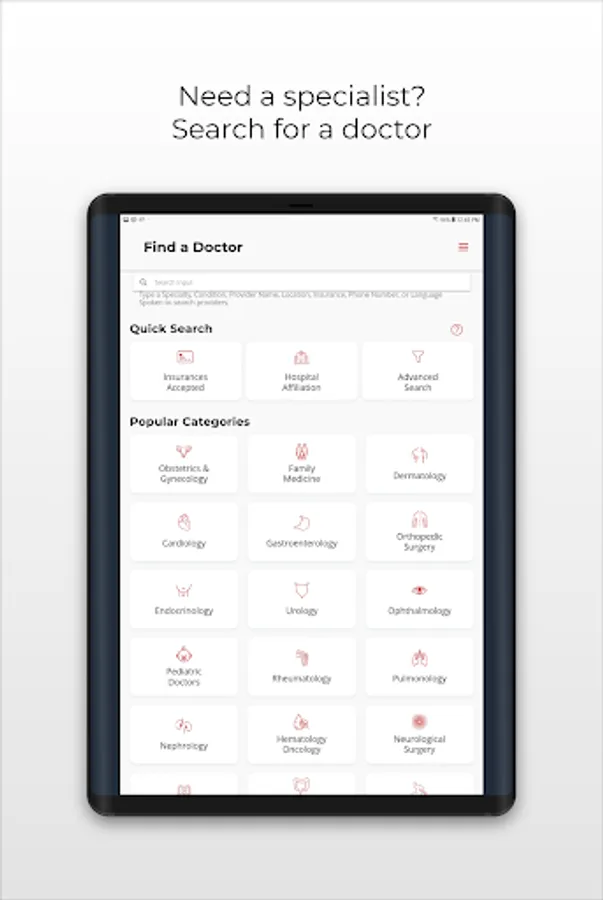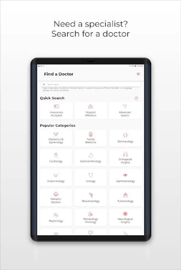 Find a Doctor: Looking for a new provider? Find care based on specialty, location, insurance, and even language.