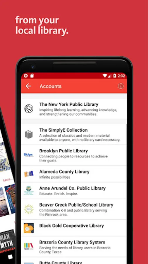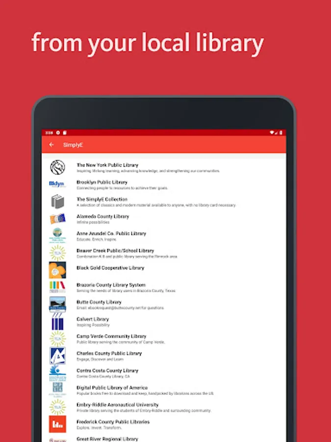 SimplyE was created by a partnership of libraries and library consortia across the country, with The New York Public Library serving as lead partner. Check with your local library to find out if it offers SimplyE, or download the app now to get started reading from the SimplyE Collection.