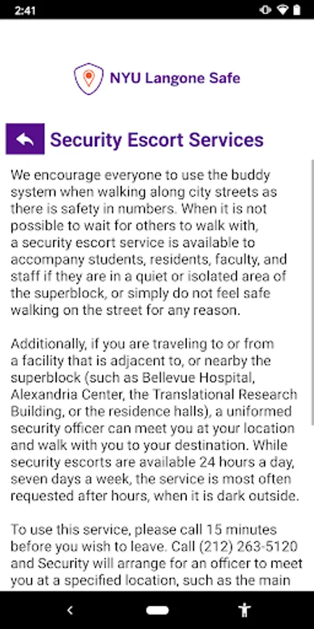 - Safety Notifications: Receive instant notifications and instructions from NYU Langone Health safety when on-campus emergencies occur.