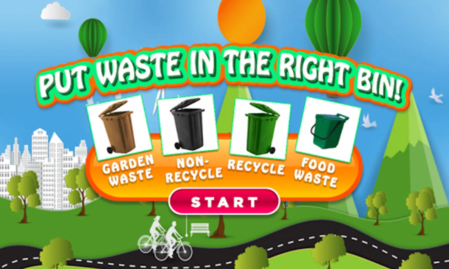 Educational game on waste recycling for kids and families. Recycling scheme of Vale of White Horse, Oxfordshire.