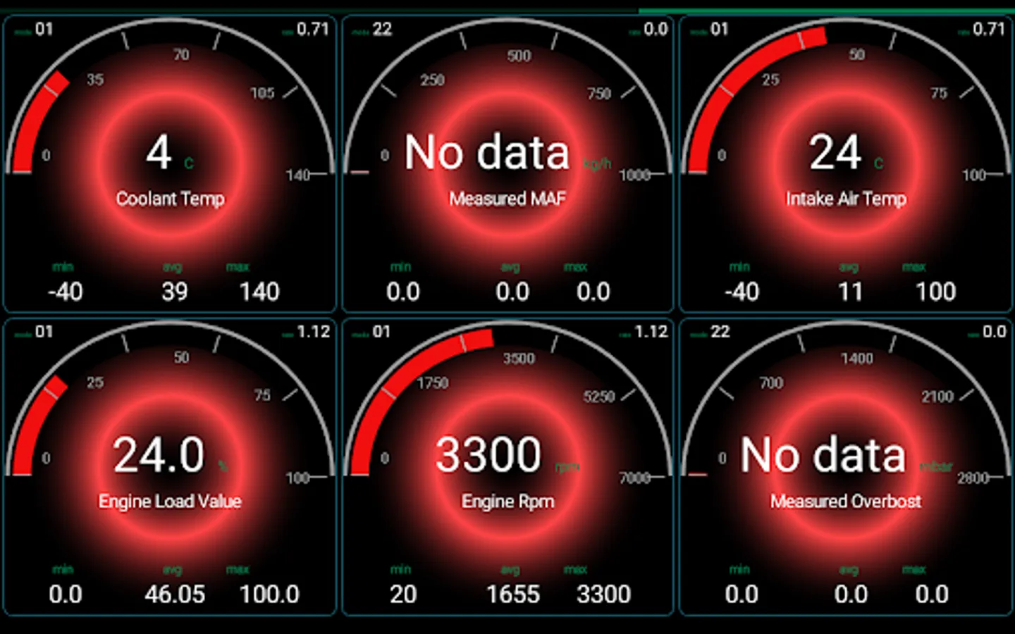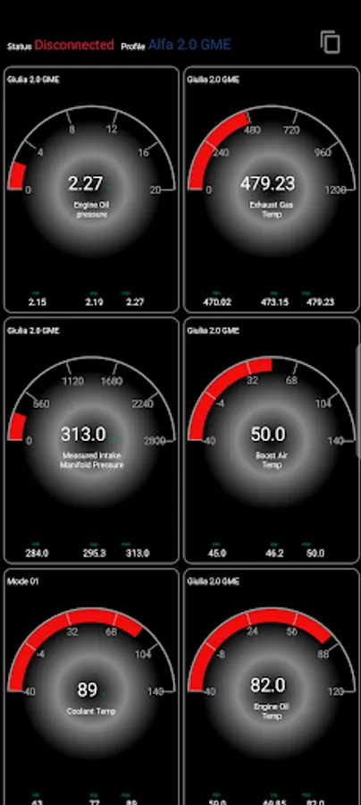 - Configurable views - The application offers few different kind of gauges which can visualize telemetry in the real-time, e.g: Boost, MAF, OIL temp, OIL Pressure, and many others.